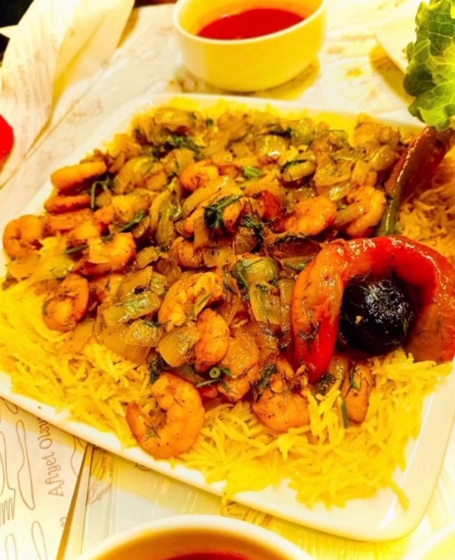 كبسة المربين ( القريدس) مع الارز والسيرفس