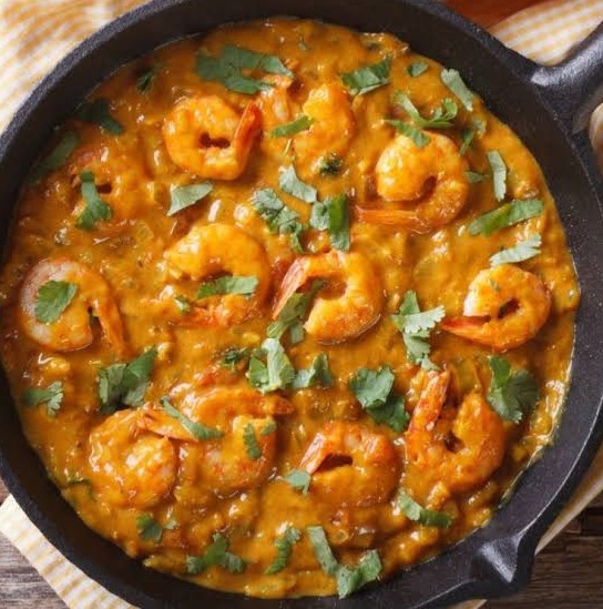 مرق روبيان غني مع صحن أرز أبيض طويل الحبة وصلصة روبيان خاصة