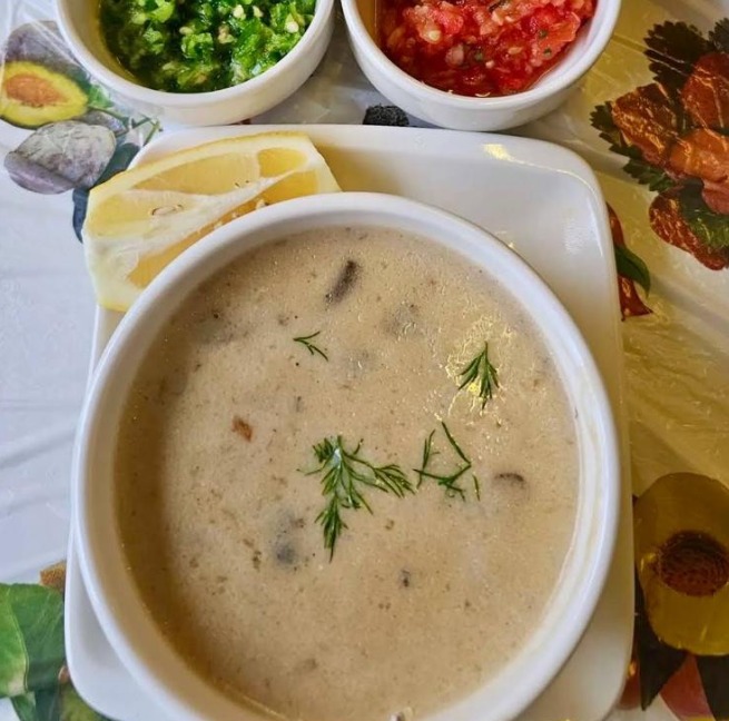 شوربة فطر طازجة مع كريمة الطبخ وبهارات خاصة، تقدّم ساخنة